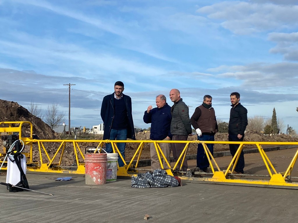 El intendente Ezequiel Galli visitó en las últimas horas las tareas de construcción que se ejecutan desde hace ya algunas semanas sobre la avenida Eva Perón (denominada también como Circunvalación) en el tramo entre avenida Sarmiento y accesos a los Parques Industriales I y II. La obra presenta tal avance que ya se inició con las tareas de hormigonado.