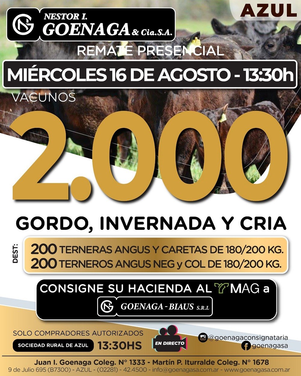 El martillero Martín Iturralde, en diálogo con Radio Olavarría, se refirió a la hacienda a subastar, rondando los 2.000 animales.