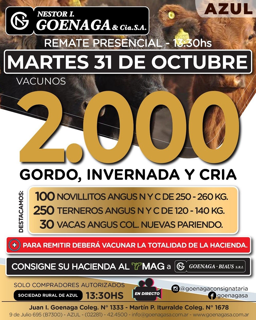 Dijo que saldrán 2.000 vacunos a la venta, gordo, invernada y cría.