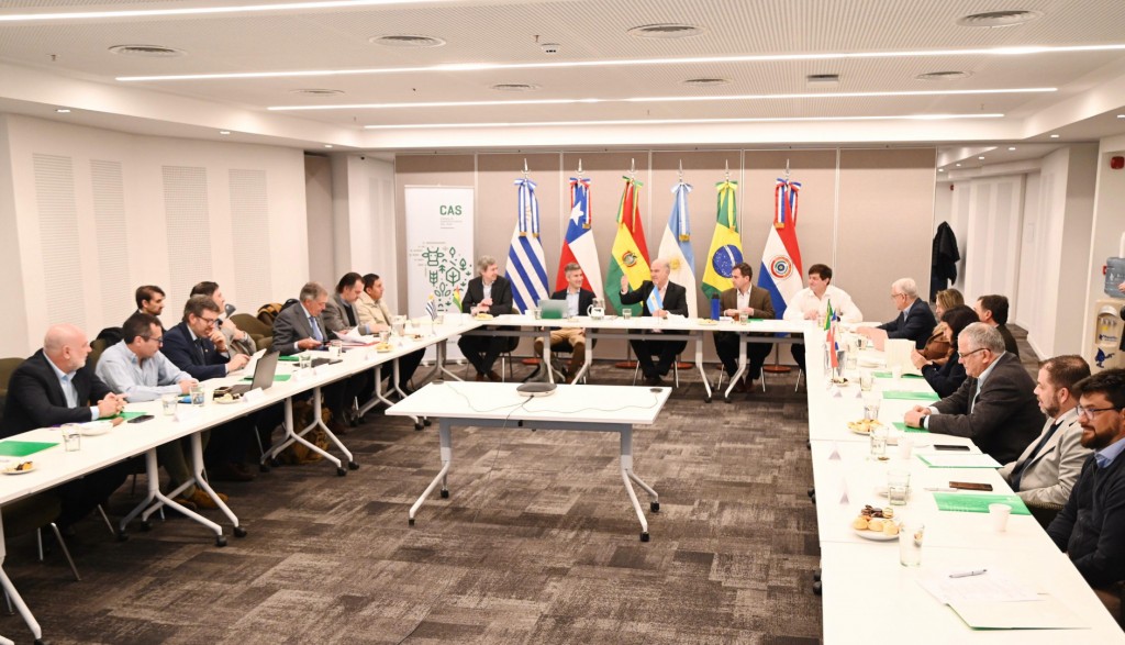 En el marco de la 136° Exposición de Ganadería, Agricultura e Industria organizada por la Sociedad Rural Argentina, se realizó la XLVII Reunión Ordinaria del Consejo Agropecuario del Sur (CAS) con la participación del Secretario de Agricultura, Ganadería y Pesca, Sergio Iraeta; el Ministro de Agricultura, Ganadería y Pesca de Uruguay, Fernando Mattos; el Ministro de Agricultura de Chile, Esteban Valenzuela; el Secretario Ejecutivo Adjunto del Ministerio de Agricultura, Ganadería y Abastecimiento de Brasil, Cléber Oliveira Soares ; el Director de Ganadería de Paraguay, César Duarte; y el Director de Producción Pecuaria, Acuicultura y Pesca del Ministerio de Desarrollo Rural y Tierras de Bolivia, Víctor Hilari, y el secretario Ejecutivo del Consejo Agropecuario del Sur, Gabriel Delgado.